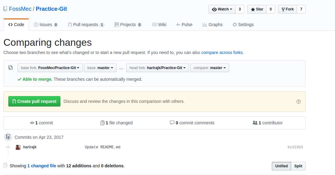<your-username>/practice-gitand base fork asfossmec/practice-git. Create a pull request and you're done!