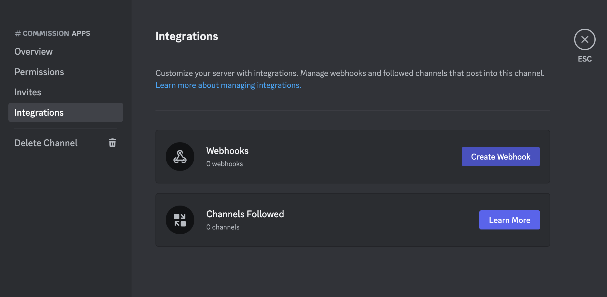 - Create a "test" Discord channel webhook