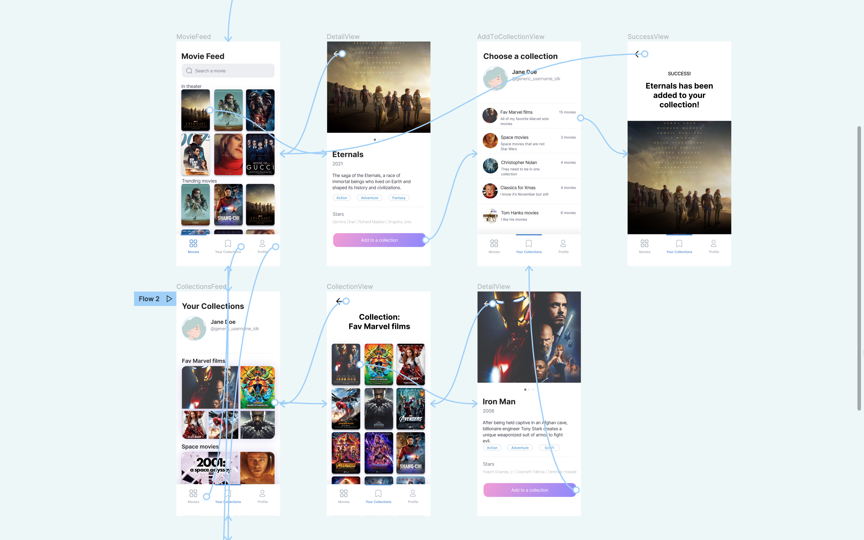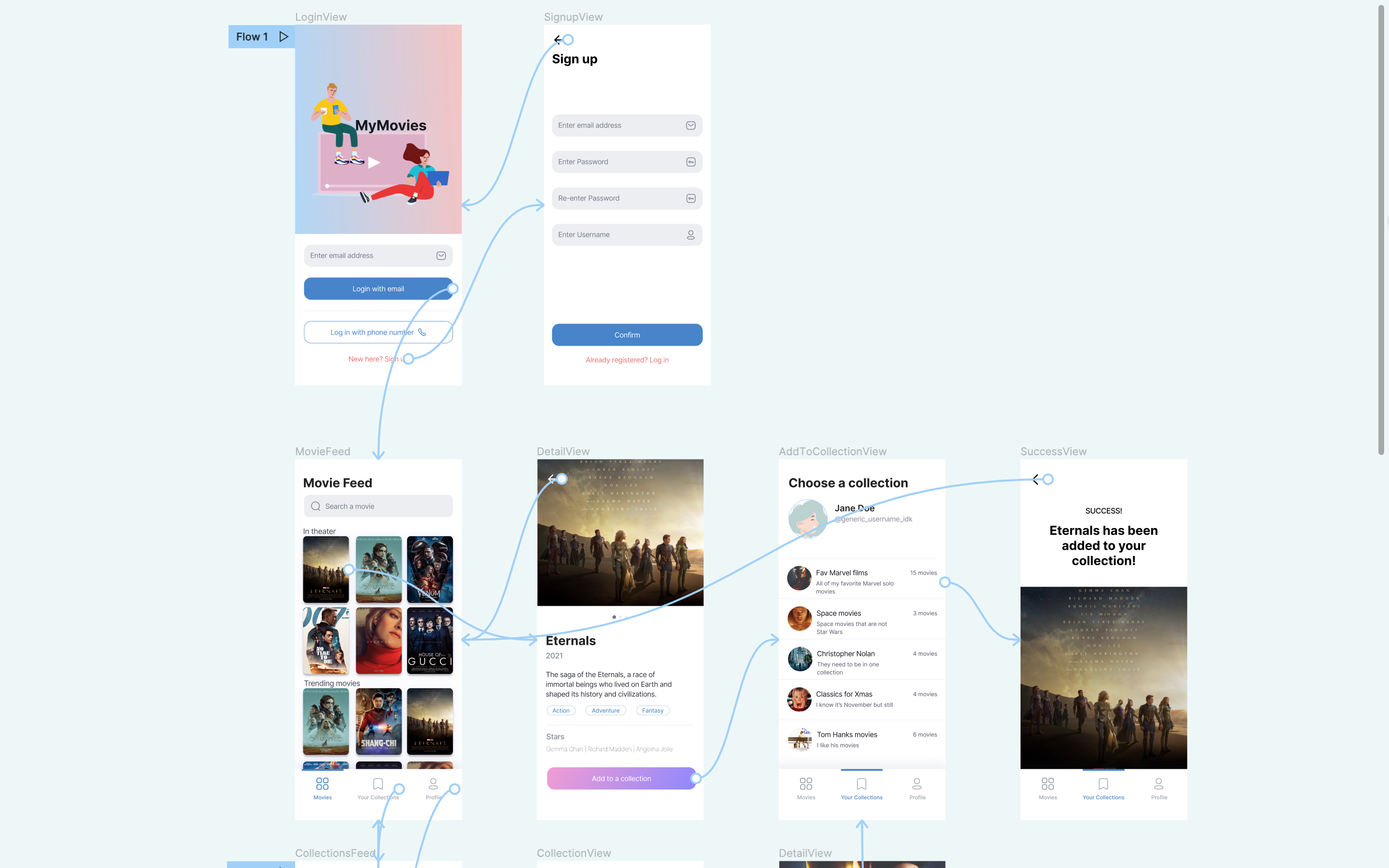 - User can see collections they have created and modify them (remove movies, add new movies, delete collections)