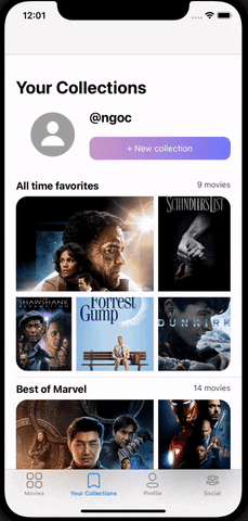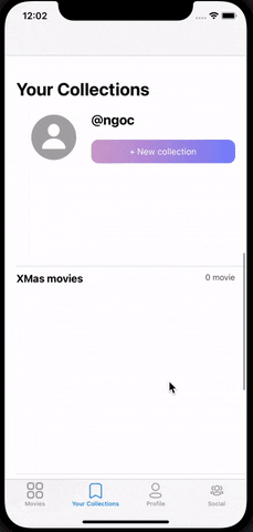 - User can create a new movie collection in collection view