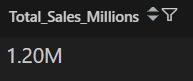 SELECT CONCAT(CAST(sum(sales)/1000000 as DECIMAL(10,2)),'M') as Total_Sales_Millions