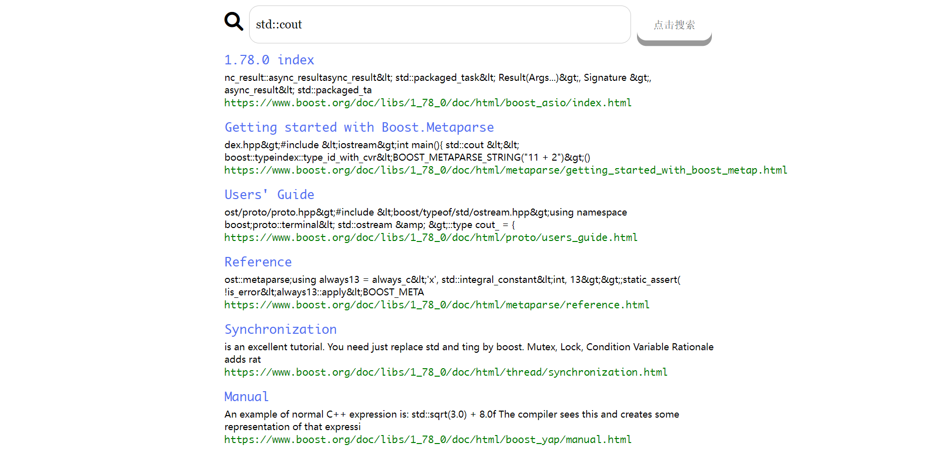 是一个针对boost官网的简易站内搜索引擎项目,并且支持下载网页的HTML文件更新搜索引擎内容,boost作为cpp的准标准库,但是它的官网没有搜索功能,用起来不是很方便。