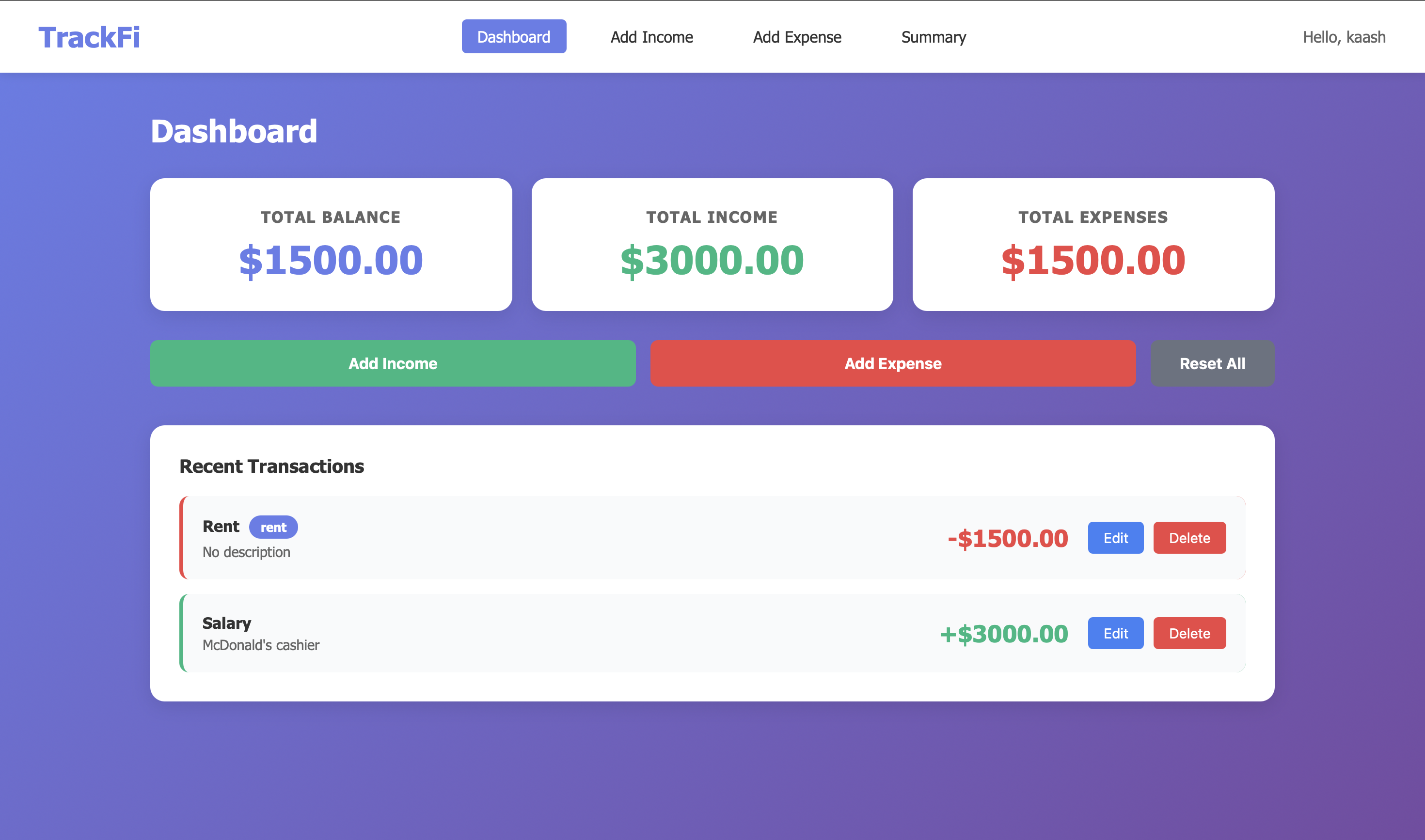 - Edit and delete transactions via modal UI