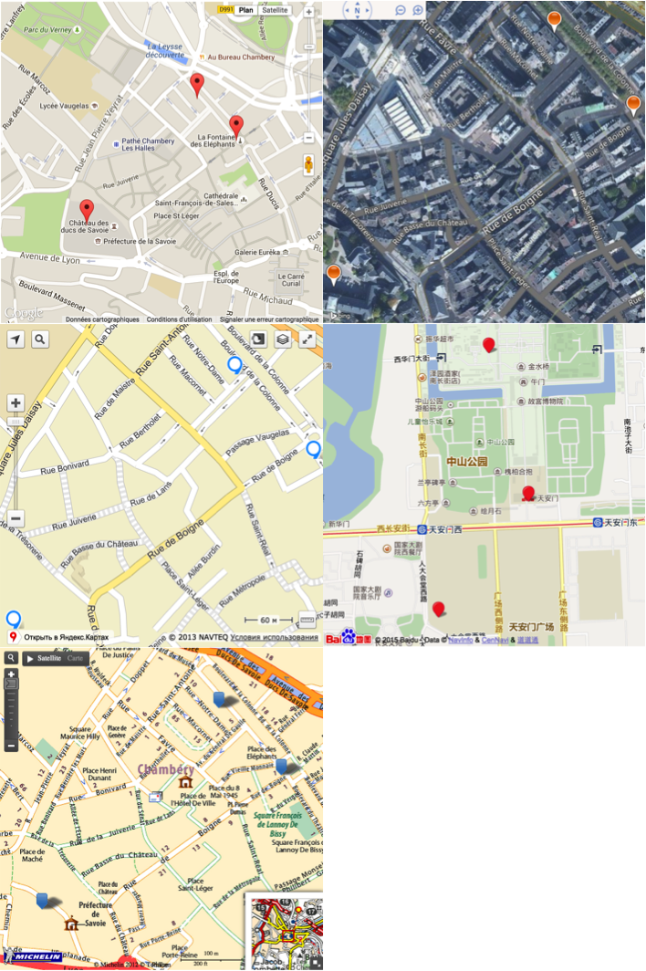}, true, false);| Google Map | Bing Map | Baidu | Mappy | Yandex | ViaMichelin | OpenStreetMap | |