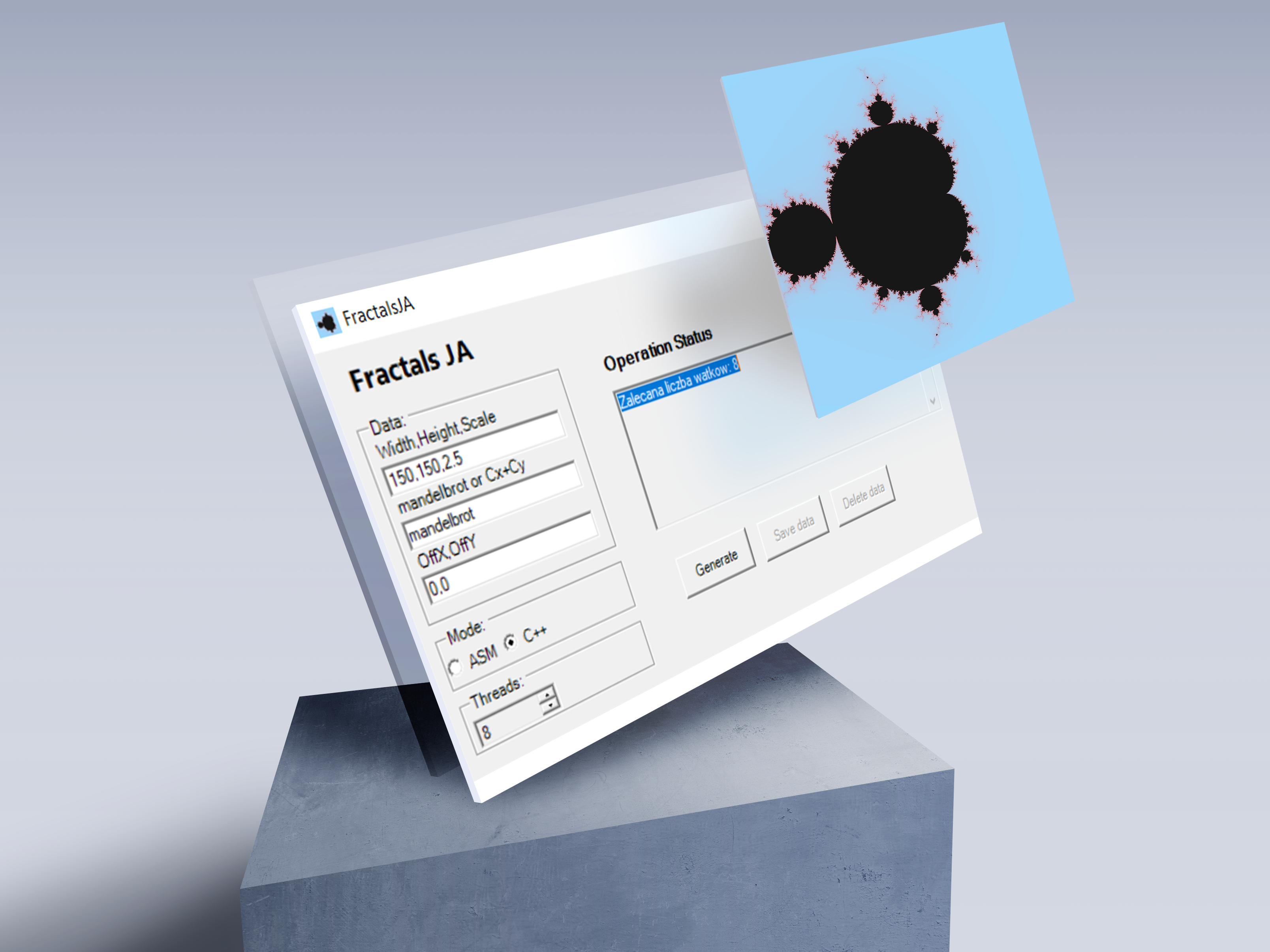 - Algorithm Choice: Option to select between C++ or ASM for the fractal generation algorithm.