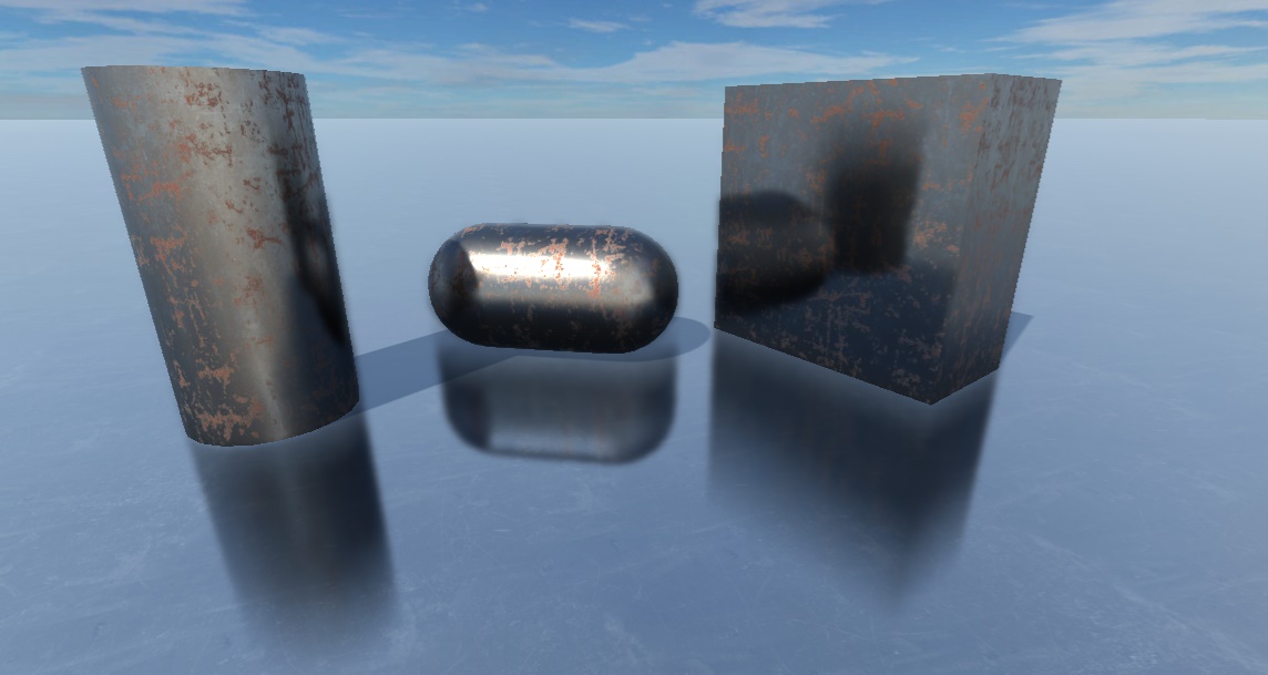 -Reflects the view direction over the G-Buffer normal and raytraces through the world position texture (64 samples, can be less). The tracing is noisy so there are no visible lines/layers