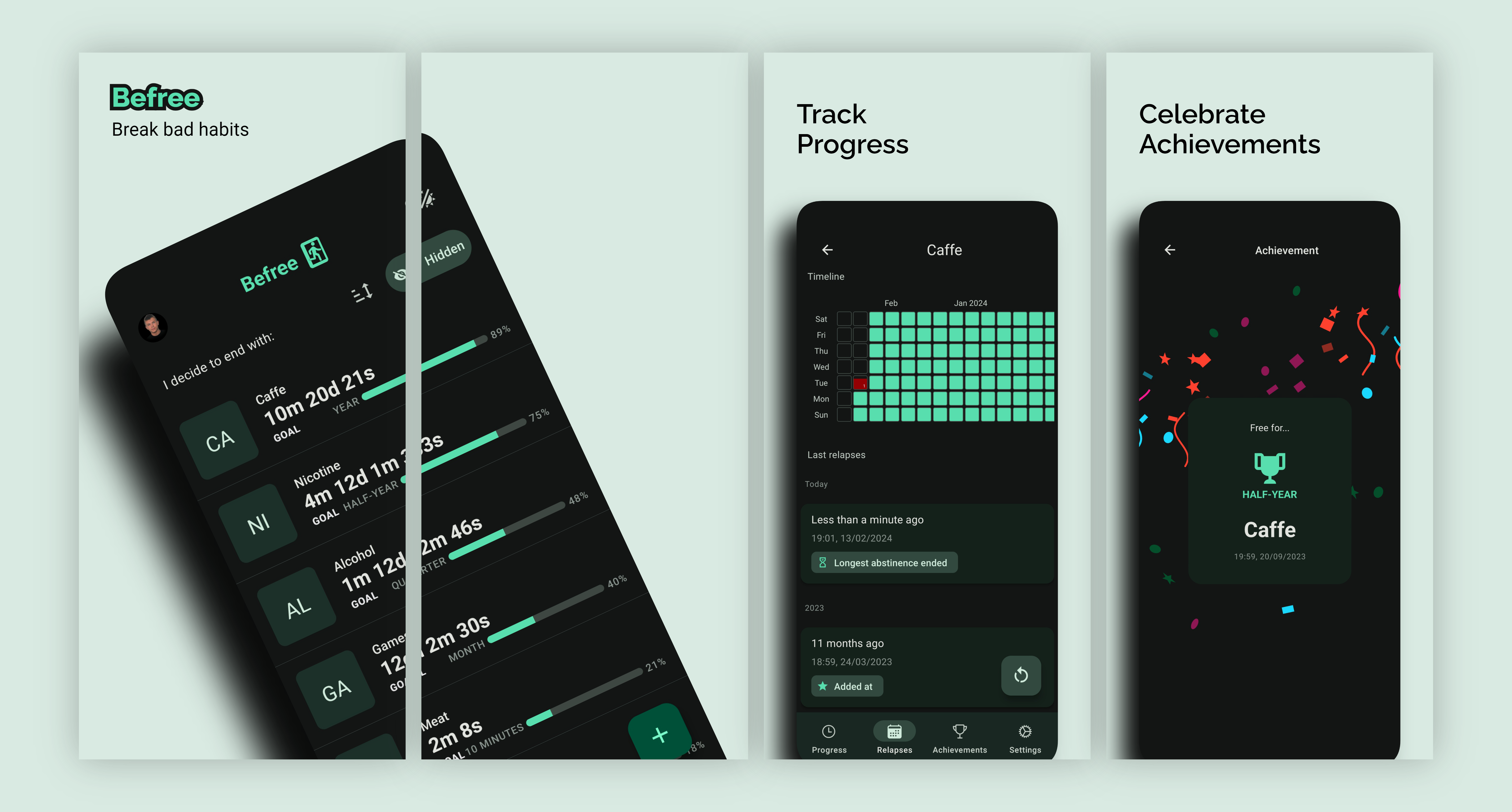 Befree is addiction tracking mobile app, which helps to monitor and control your bad habits.
