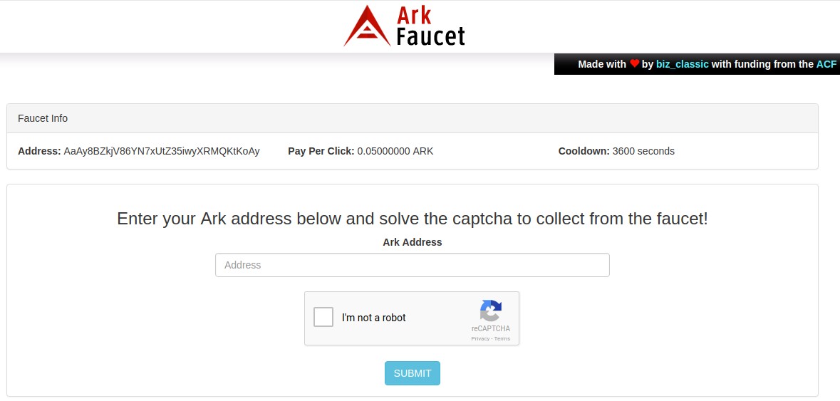 This is a full front/backend implementation of a cryptocurrency faucet for Ark written in Node using the Express framework.