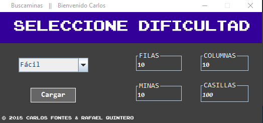 Juego clásico de Buscaminas, con las mismas funcionalidades que tiene el juego original de Windows. El objetivo del juego es despejar un campo de minas sin detonar ninguna.