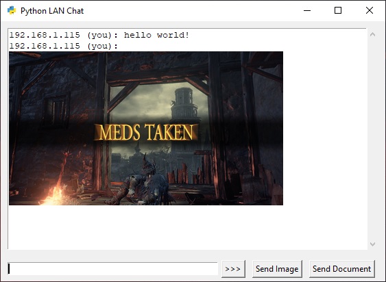 - Any files sent are hashed and the hash is displayed!