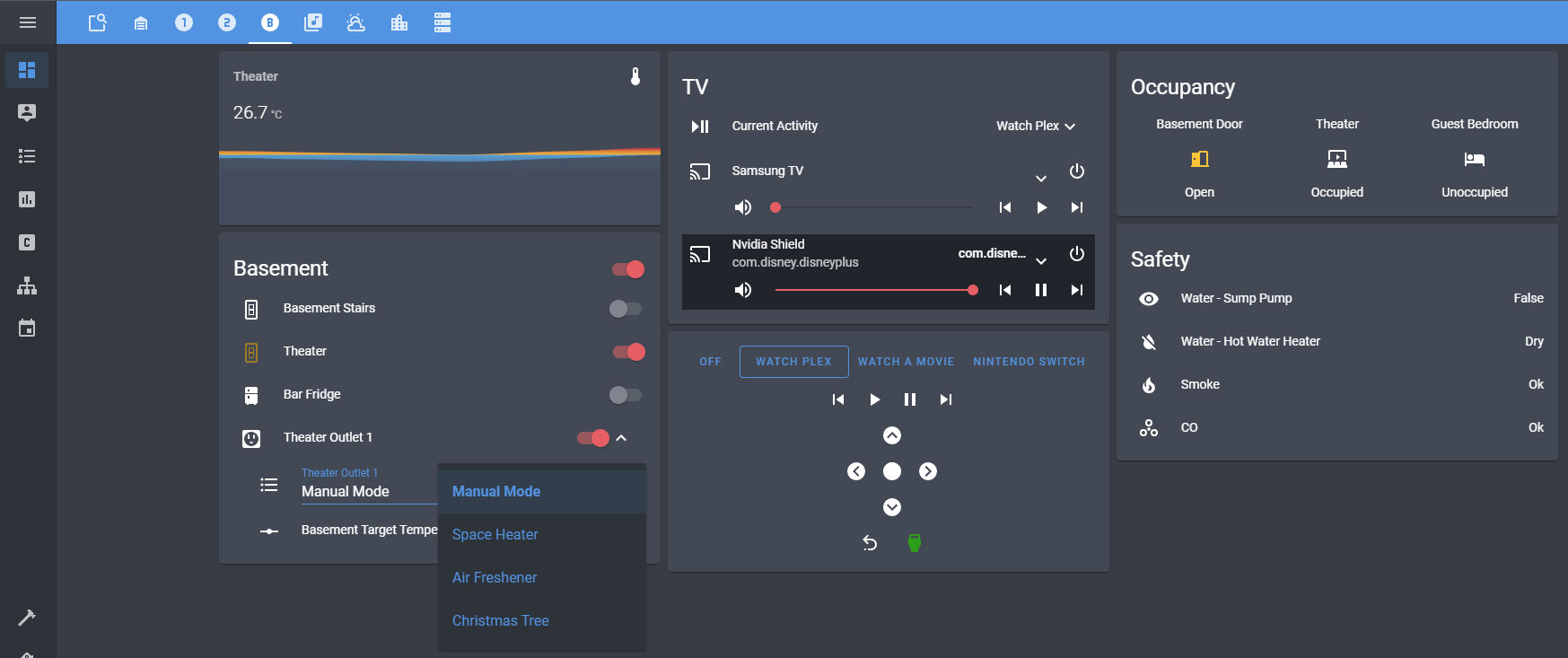 - The Outside view is for things like the security panel, perimeter lights, etc.