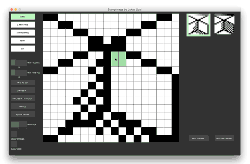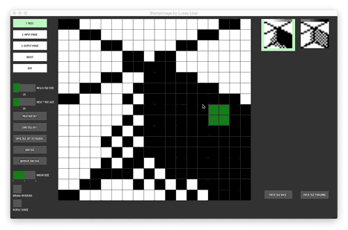 StampImage is tool for easy tiled mosaics creation. Workflow is flexible and super fast. You have real time preview of your work at any point, so you can quickly prototype by changing, erasing, adding or switching each of the mosaic patterns. Each of your pattern tiles is placed to final mosaic based on input image so with one set of pattern tiles you can generate new mosaics with just switching input image for a new one. Oh and you can also save your patterns so you can load and reuse/edit/profit later.