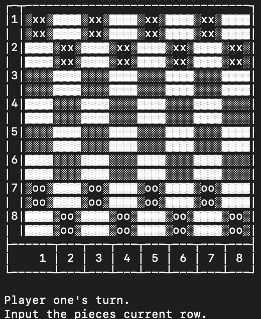 Rusty Checkers A checkers game written in Rust for the CLI. cd rust-checkers cargo run 8x8 Checkers Board. Pieces are kinged once they reach the other board side. Kings can move in any direction. The last player with pieces remaining wins!