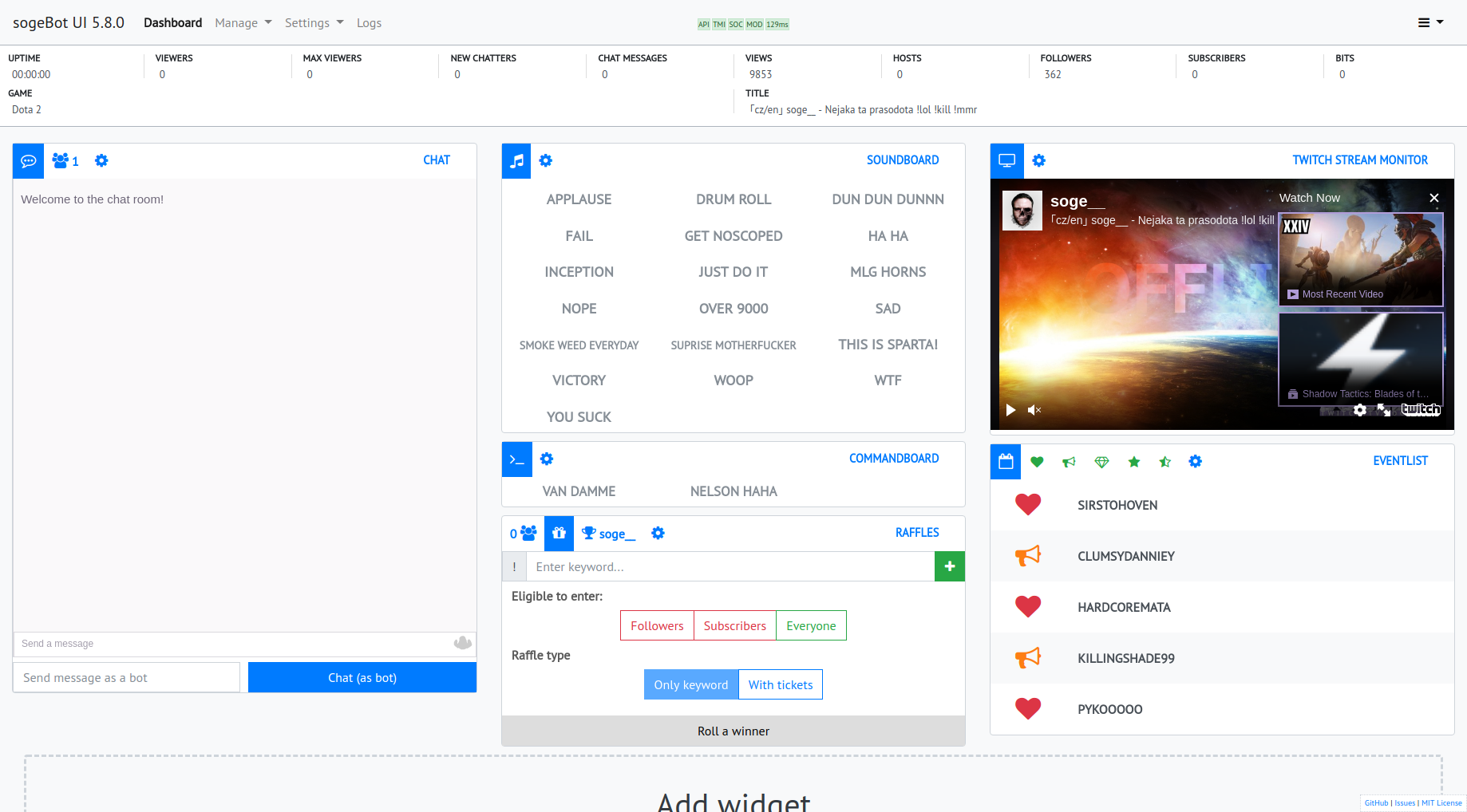 | Many widgets for your dashboard: customizable soundboard (/public/dist/soundboard/), follower list, twitch monitor, bets, songs and more | |