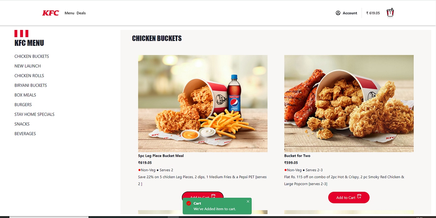 - We take all the responsibility for every single line of code. The design inspires by https://online.kfc.co.in/.