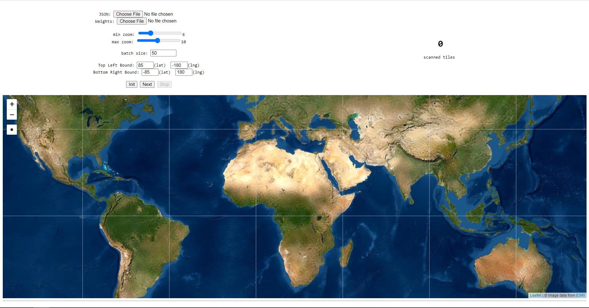 Simply download the repository and open the html file in your browser. All dependencies (Leaflet and TensorFlow) are included in the html file via CDN. When opening the HTML you are required to add a model that should be applied on each tile. The model used in the original YouTube video (detecting penis shapes) is added in the jsModel folder if you want to play with that. After choosing the other variables, you can initialize using the 'init' button and start the search by using the 'Next' button. The interface will scan all image tiles systematically and when they trigger the AI, the tile will be marked on the map and a link will be stored at the bottom of the page.