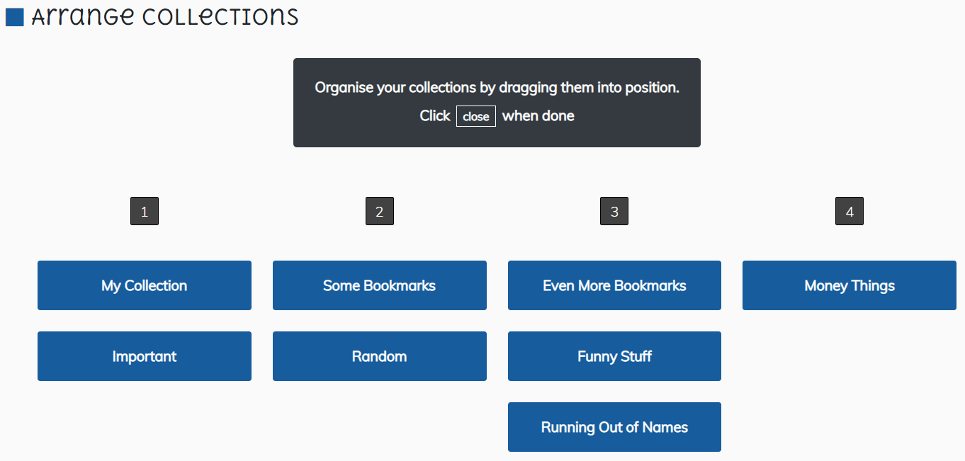 - Organise my bookmarks into collections of similar bookmarks