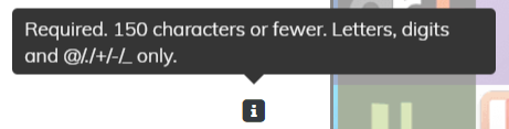 Tooltips are next to the username and password fields and provide guidance on how these fields should be completed.