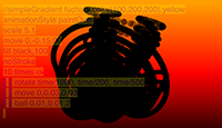 It's a live coding tool that artists can use, misuse and tweak. Go full screen, hide the code and you can make incredible screen recordings with just a few lines of code!