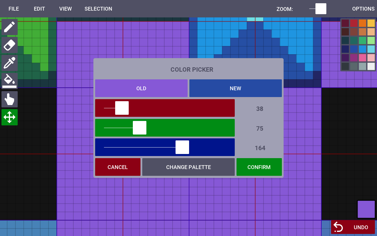 - Editing Tools: Pencil, Eraser, Floodfill, Move, Eyedropper.