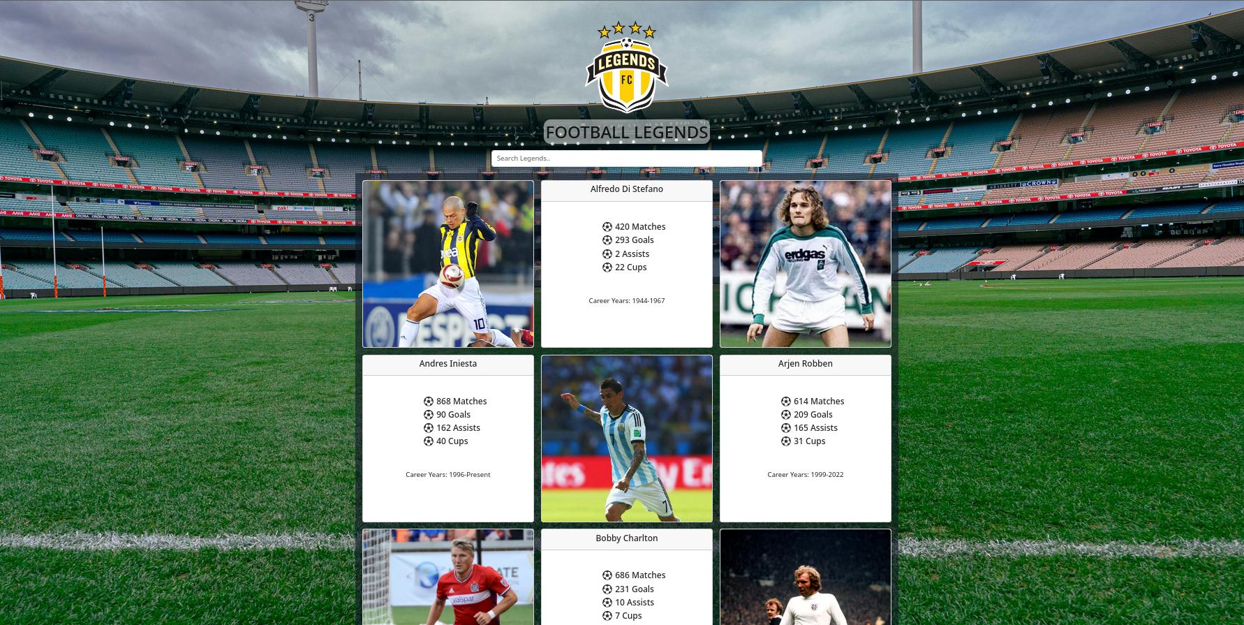 | 19 | Frontend | Footbal Cards for Legends | React19, Javascript, React Bootstrap | ![]() |