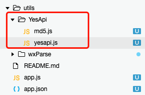 将当前项目里面的YesApi目录,下载到你的微信小程序项目中,放到utils目录内。